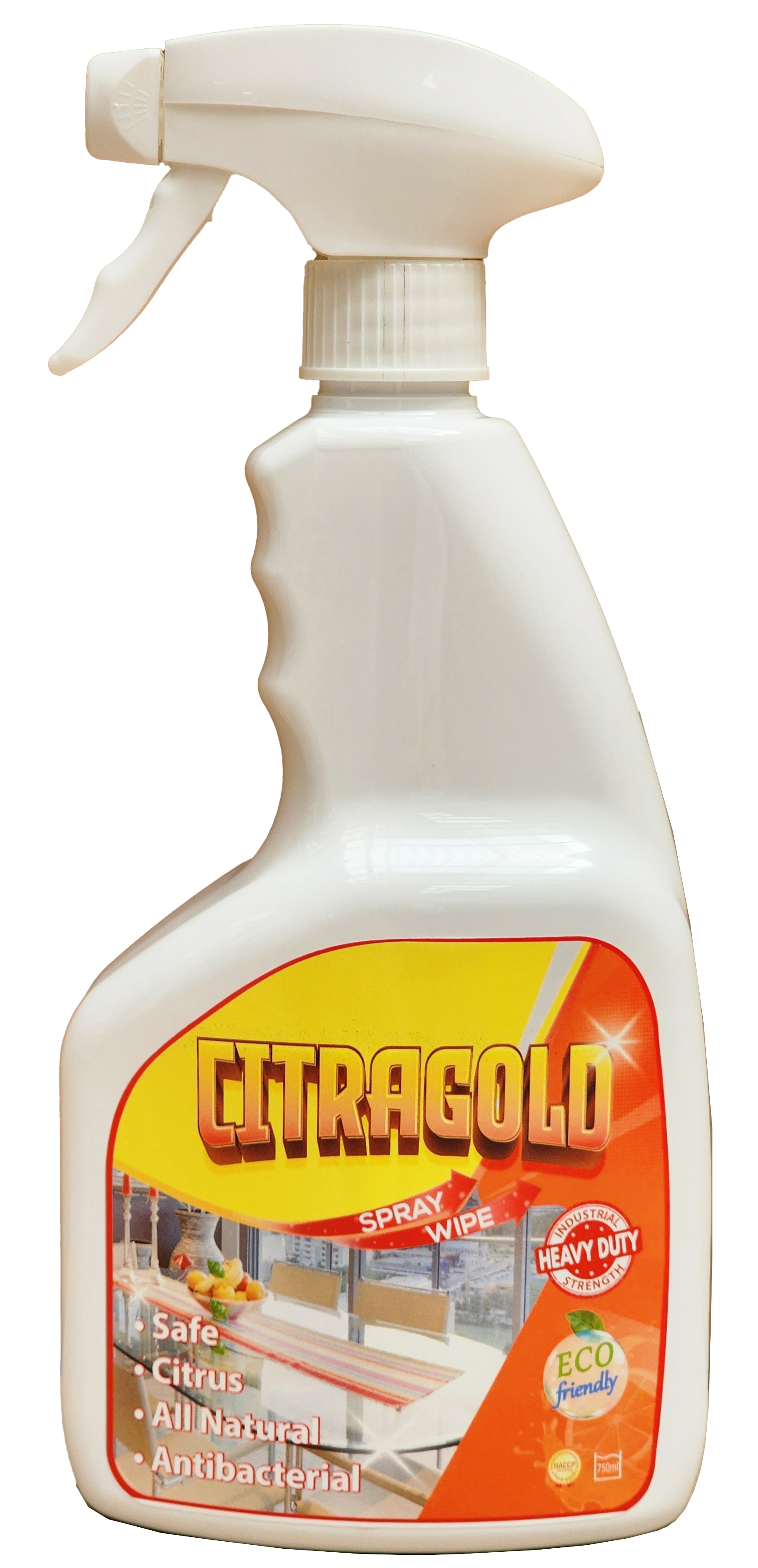 CITRAGOLD is a citrus based, commercial strength concentrated multipurpose spray & wipe detergent. It will clean greasy soil, general dirt, grime, heavy carbon based soils from all types of surfaces safely.