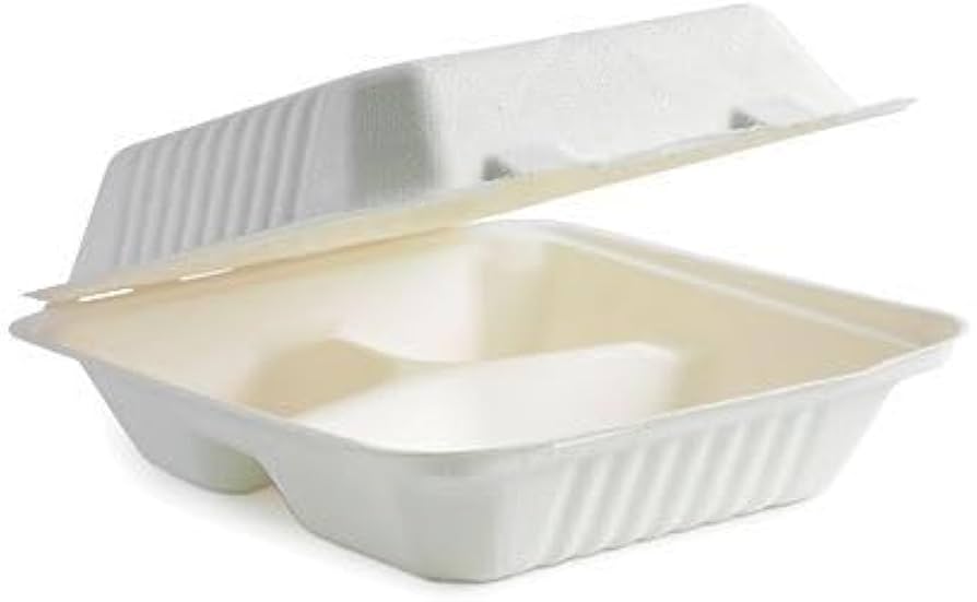 Clamshell Sugarcane 8" 3 Compartments 200pc/ctn (A-SH08-3)