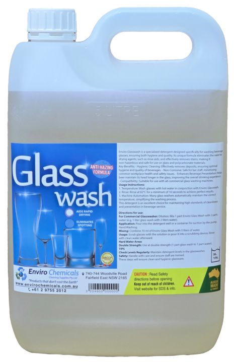 Enviro Glass wash can be used in machines with hot water or as a hand wash as required, extra cleaning power.