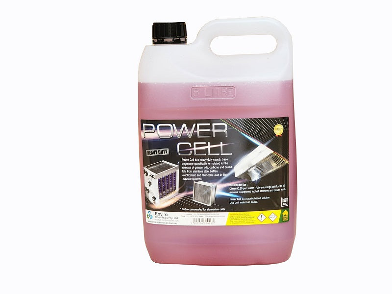 POWER CELL is a heavy duty caustic base degreaser specifically formulated for the commercial exhaust filter industry.