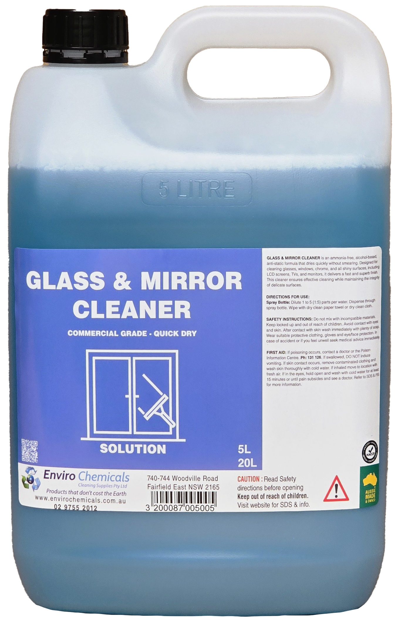 Spray & wipe –Spray Solution over the surface to be cleaned. Use quality toweling or paper towel to wipe off dirt and excess product. For heavily soiled glass a second application may be required. Use fresh clean dry towel/paper towel to remove all excess product and to polish surface.