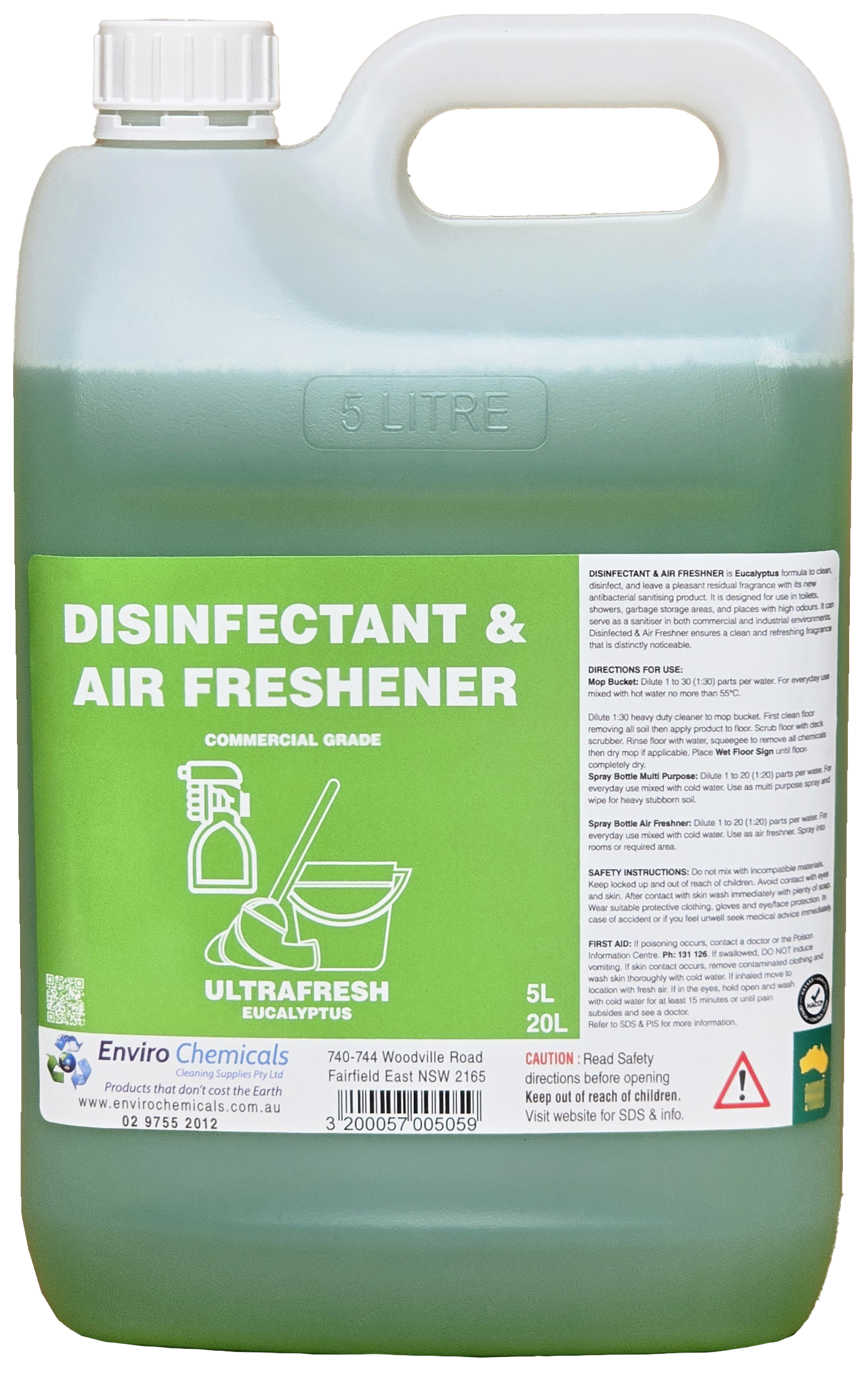 AIR FRESHENER & DISINFECTANT CLEANSER (Not hazardous according to criteria of Worksafe Australia) Disinfectant is designed to clean, disinfect and leave a pleasant residual fragrance. Disinfectant with a new antibacterial formula, designed to be used in general cleaning, cleaning equipment, telephones, toilets, showers, garbage storage areas and areas of high odours. Disinfectant cleans, disinfects, deodorises and refreshes. Disinfectant is available in different fragrances to...